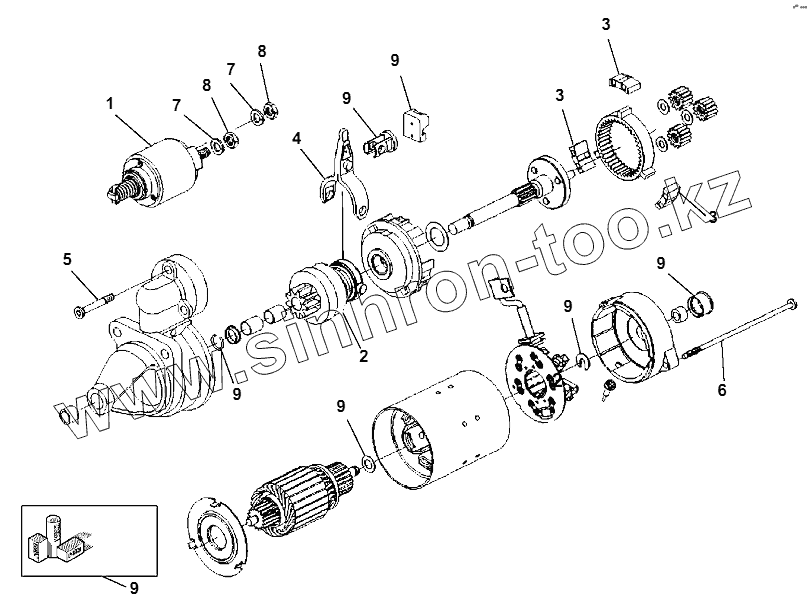 Каталог запасных частей к технике: Komatsu WB93S-5E0. STARTER MOTOR (2/2)