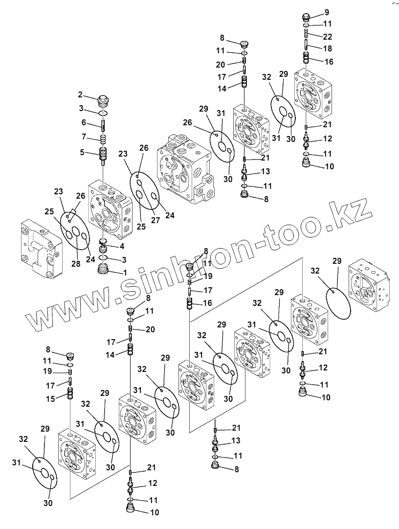 Каталог запасных частей к технике: Komatsu WB97S-5E0. 10-SPOOL CONTROL VALVE (11/16)