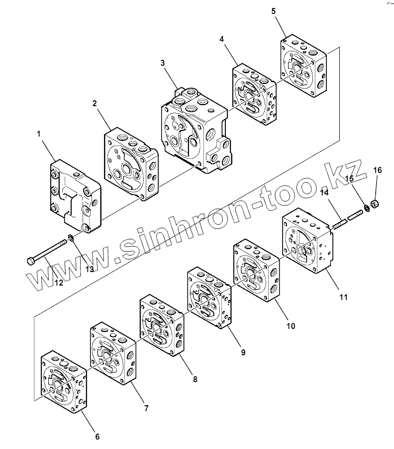 Каталог запасных частей к технике: Komatsu WB97S-5E0. 10-SPOOL CONTROL VALVE (1/16)
