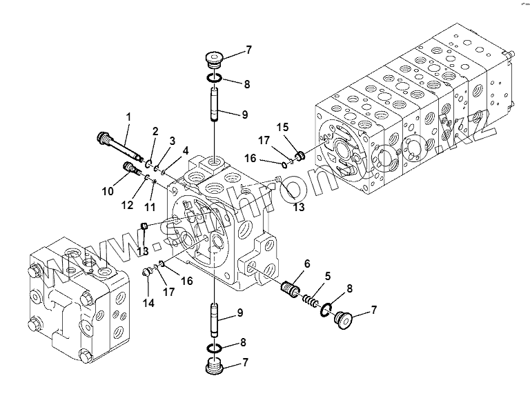 Каталог запасных частей к технике: Komatsu WB97S-5E0. 10-SPOOL CONTROL VALVE (5/16)