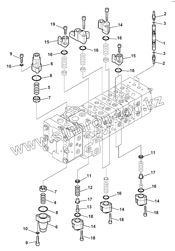 Каталог запасных частей к технике: Komatsu WB97S-5E0. 10-SPOOL CONTROL VALVE (7/16)