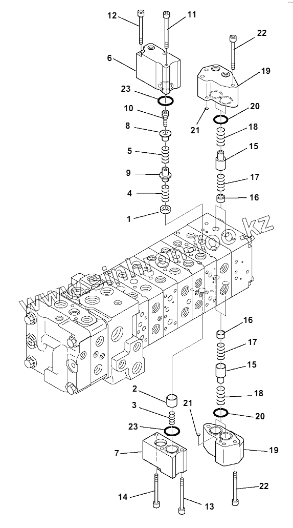 Каталог запасных частей к технике: Komatsu WB97S-5E0. 10-SPOOL CONTROL VALVE (9/16)