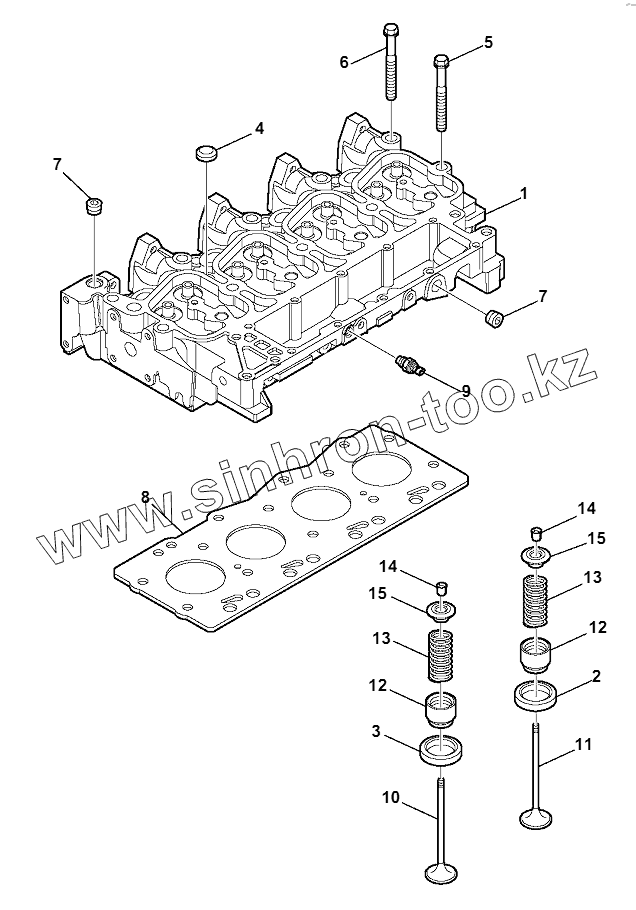 Каталог запасных частей к технике: Komatsu WB97S-5E0. CYLINDER HEAD (1/2)