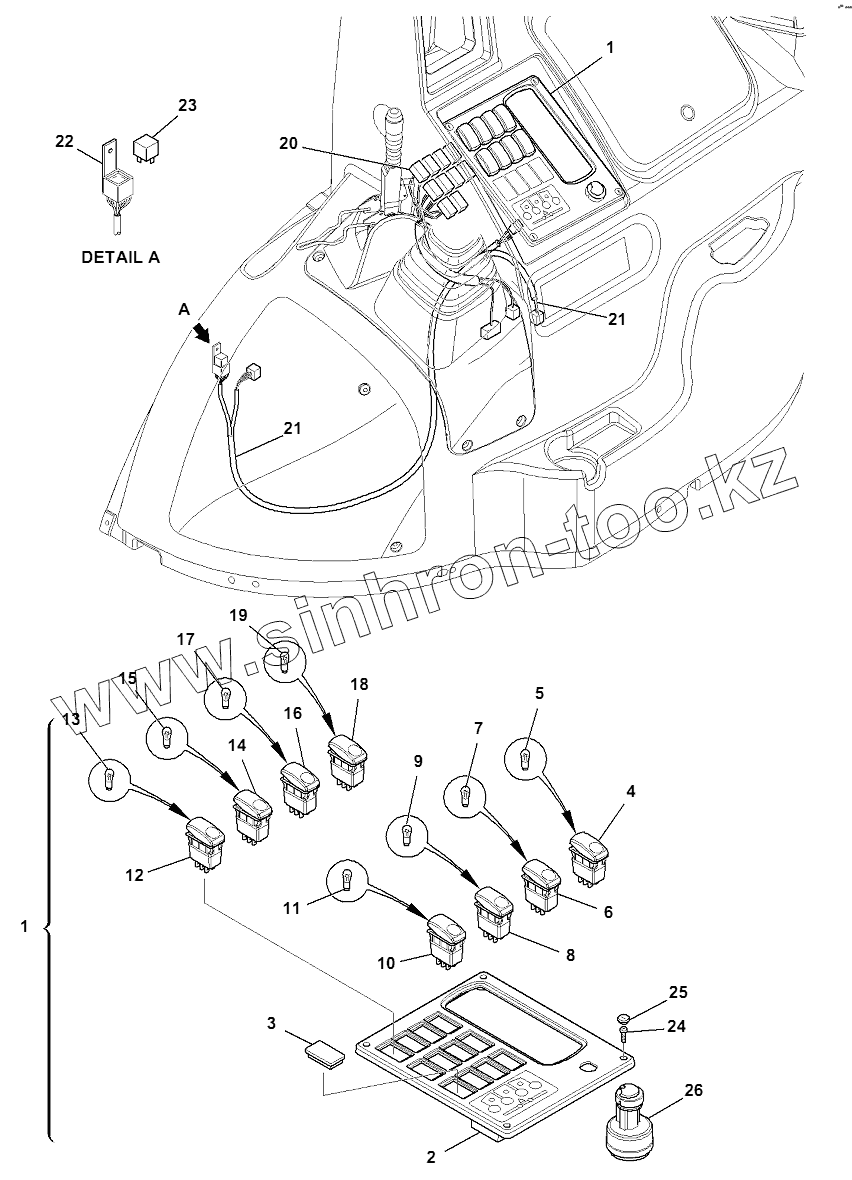Каталог запасных частей к технике: Komatsu WB97S-5E0. ELECTRICAL SYSTEM (CAB) (5/5)