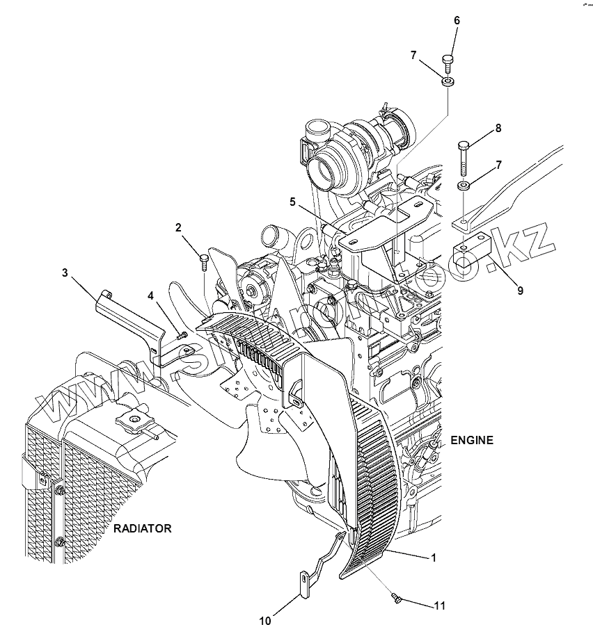 Каталог запасных частей к технике: Komatsu WB97S-5E0. FAN GUARD