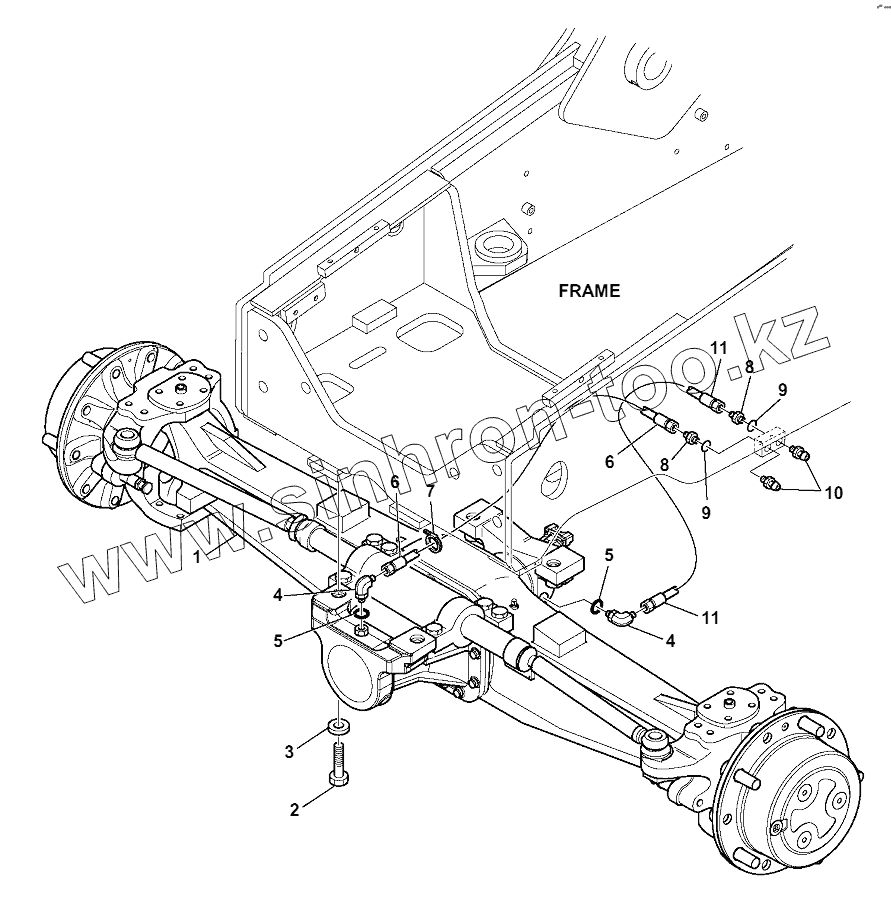 Каталог запасных частей к технике: Komatsu WB97S-5E0. FRONT AXLE FIXING