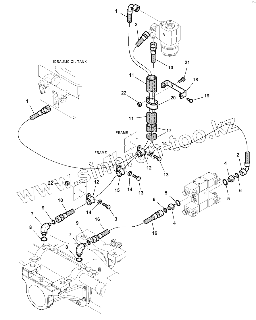 Каталог запасных частей к технике: Komatsu WB97S-5E0. HYDRAULIC PIPING (STEERING LINE) (3/4)