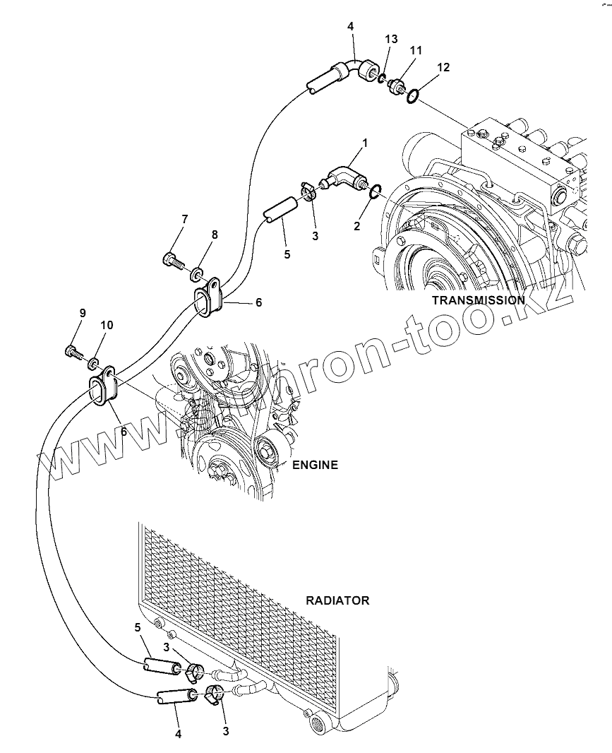 Каталог запасных частей к технике: Komatsu WB97S-5E0. HYDRAULIC PIPING (TRANSMISSION OIL COOLER LINE)