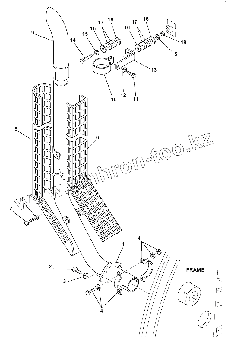 Каталог запасных частей к технике: Komatsu WB97S-5E0. MUFFLER (2/2)