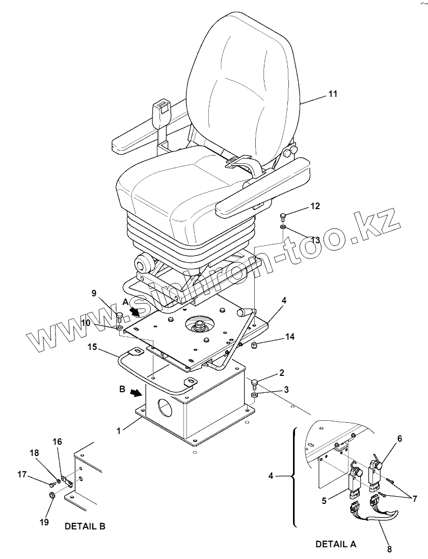 Каталог запасных частей к технике: Komatsu WB97S-5E0. OPERATOR'S SEAT (1/2)