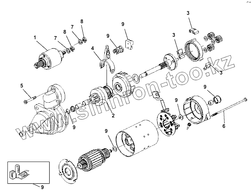 Каталог запасных частей к технике: Komatsu WB97S-5E0. STARTER MOTOR (2/2)