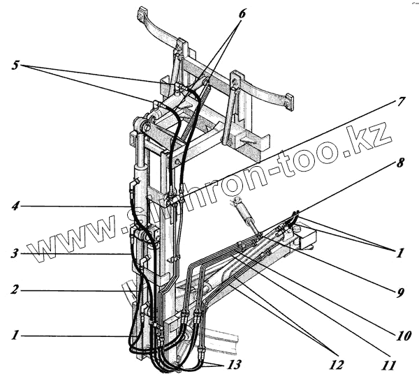 Каталог запасных частей к технике: Коммаш КО-440. Монтаж гидросистемы на манипуляторе