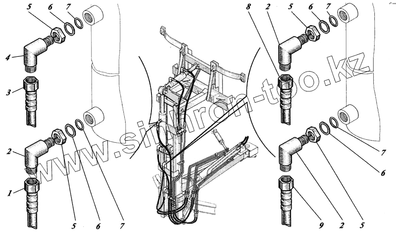 Каталог запасных частей к технике: Коммаш КО-440. Монтаж гидросистемы на манипуляторе