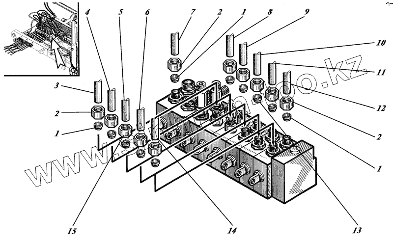 Каталог запасных частей к технике: Коммаш КО-440. Монтаж гидросистемы на надрамнике