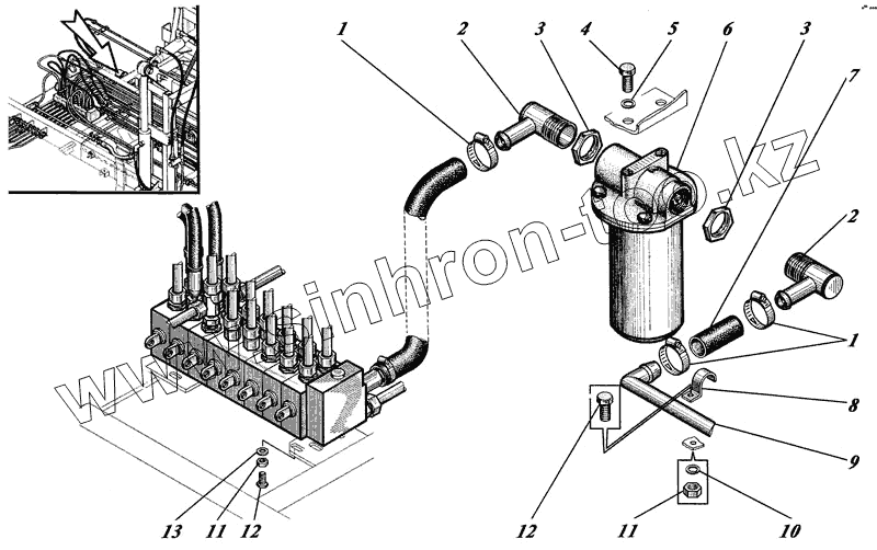 Каталог запасных частей к технике: Коммаш КО-440. Монтаж гидросистемы на надрамнике