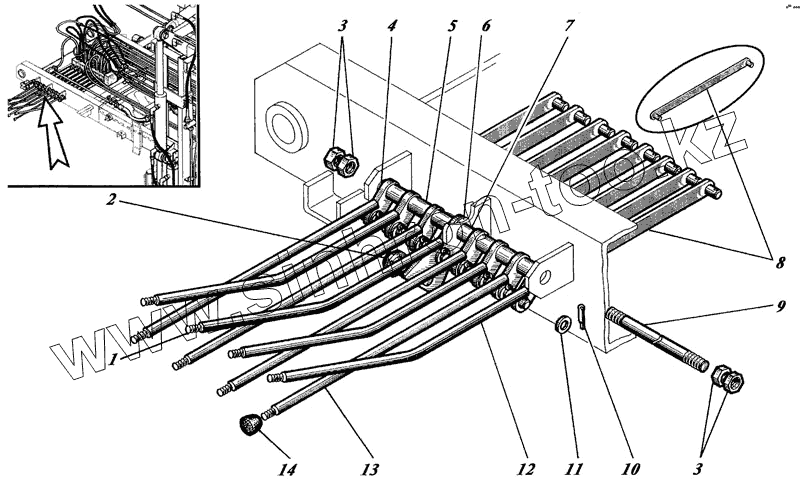 Каталог запасных частей к технике: Коммаш КО-440. Монтаж гидросистемы на надрамнике