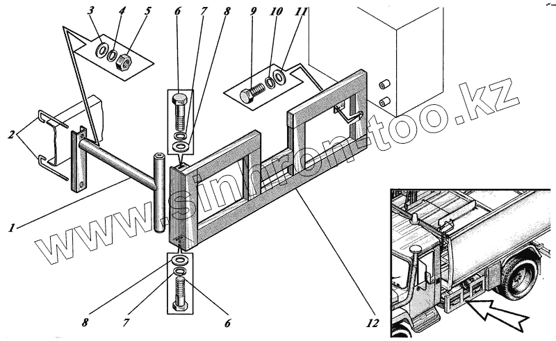 Каталог запасных частей к технике: Коммаш КО-440. Установка боковой защиты