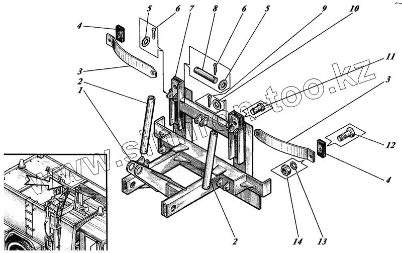 Колодка. Трос для подъема запасного колеса