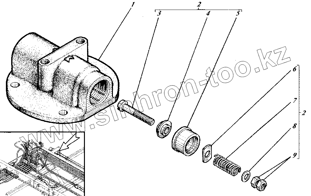 Колодка КО-750-АНМ00.00.100, трос для подъема запасного колеса 980В-07.12.000