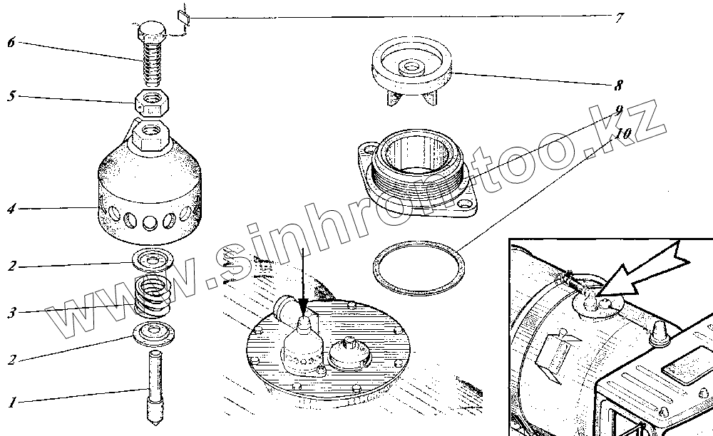 Каталог запасных частей к технике: Коммаш КО-520. Клапан предохранительный КО-507А.01.09.000