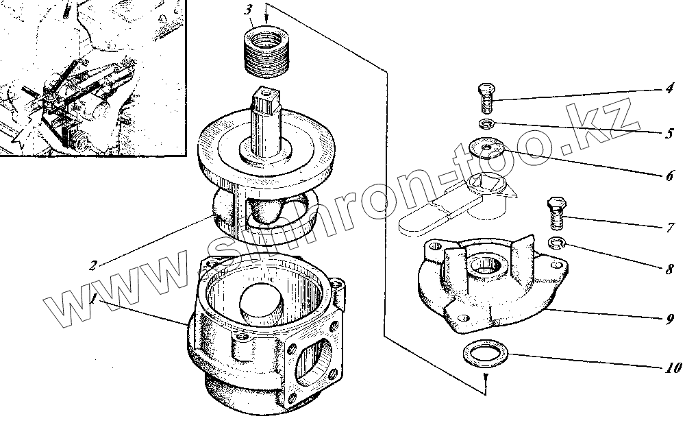 Каталог запасных частей к технике: Коммаш КО-520. Кран четырехходовой АНМ 53Э-03.18.000