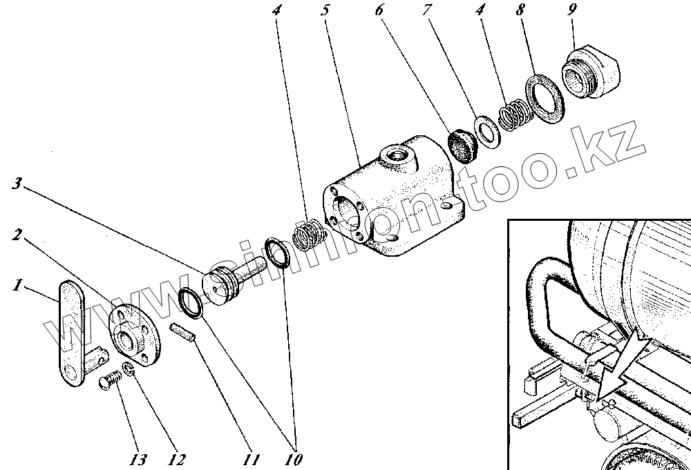 Каталог запасных частей к технике: Коммаш КО-520. Кран воздушный КО-510.05.08.000