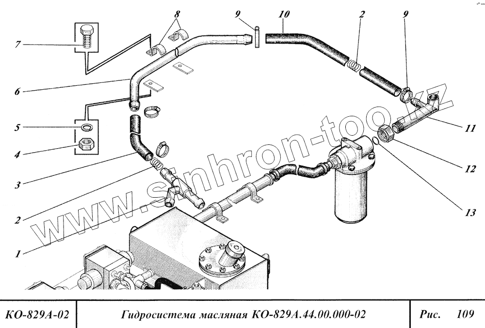 Каталог запасных частей к технике: Коммаш КО-829А. Гидросистема масляная