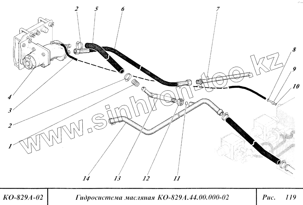 Каталог запасных частей к технике: Коммаш КО-829А. Гидросистема масляная