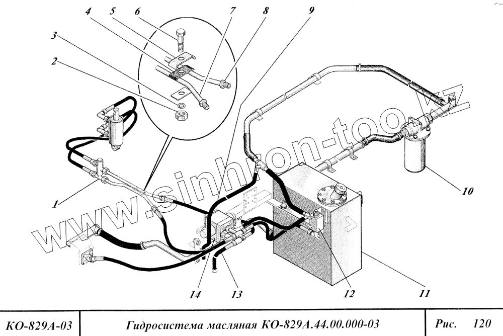 Каталог запасных частей к технике: Коммаш КО-829А. Гидросистема масляная