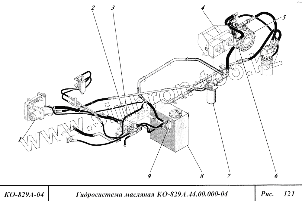 Каталог запасных частей к технике: Коммаш КО-829А. Гидросистема масляная