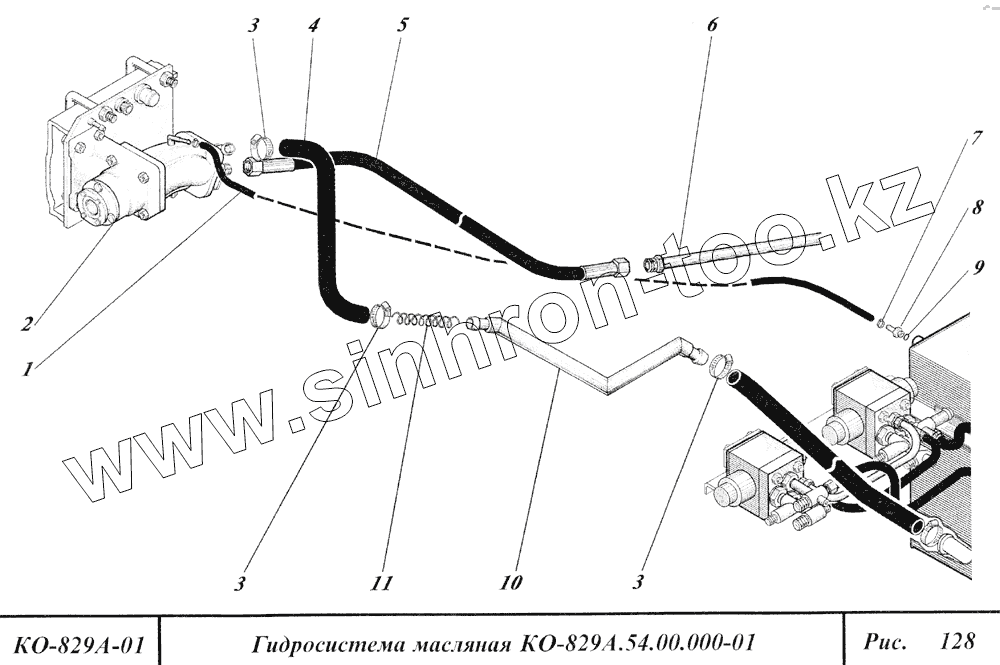 Каталог запасных частей к технике: Коммаш КО-829А. Гидросистема масляная