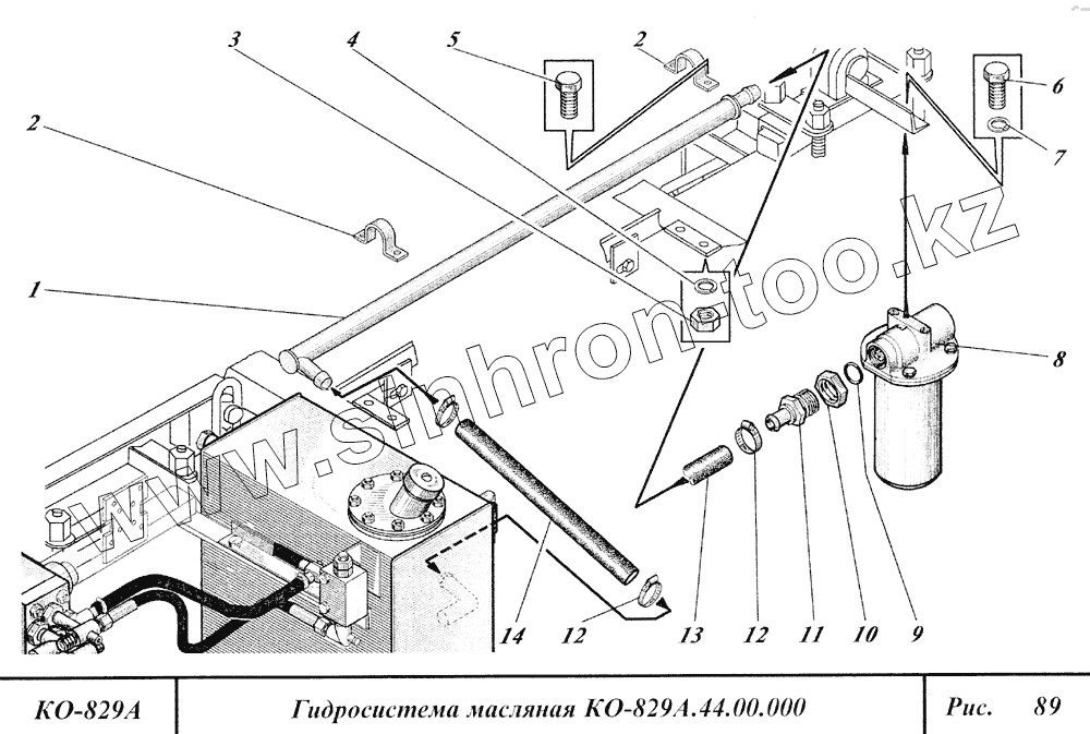 Каталог запасных частей к технике: Коммаш КО-829А. Гидросистема масляная