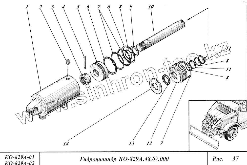 Каталог запасных частей к технике: Коммаш КО-829А. Гидроцилиндр