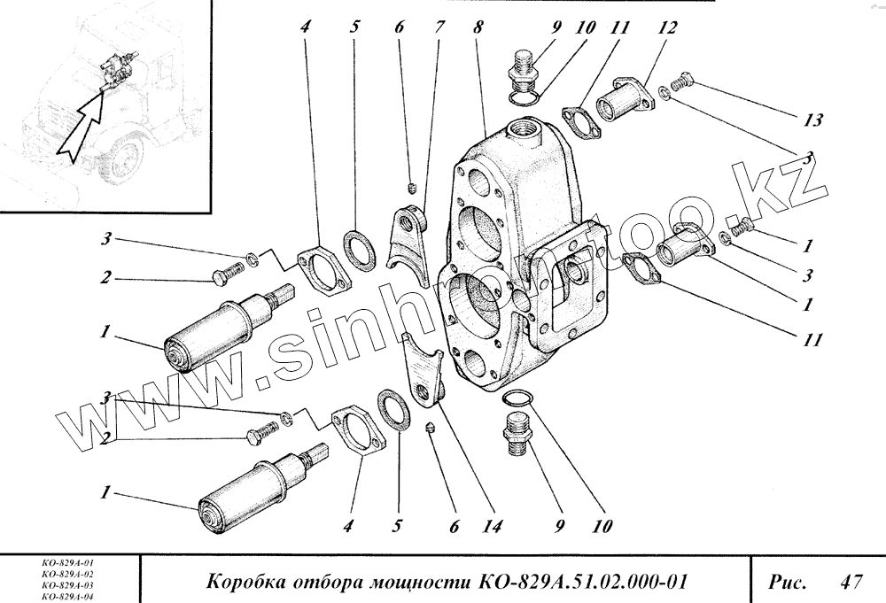 Каталог запасных частей к технике: Коммаш КО-829А. Коробка отбора мощности