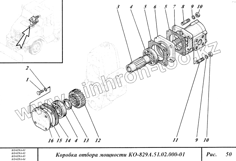 Каталог запасных частей к технике: Коммаш КО-829А. Коробка отбора мощности