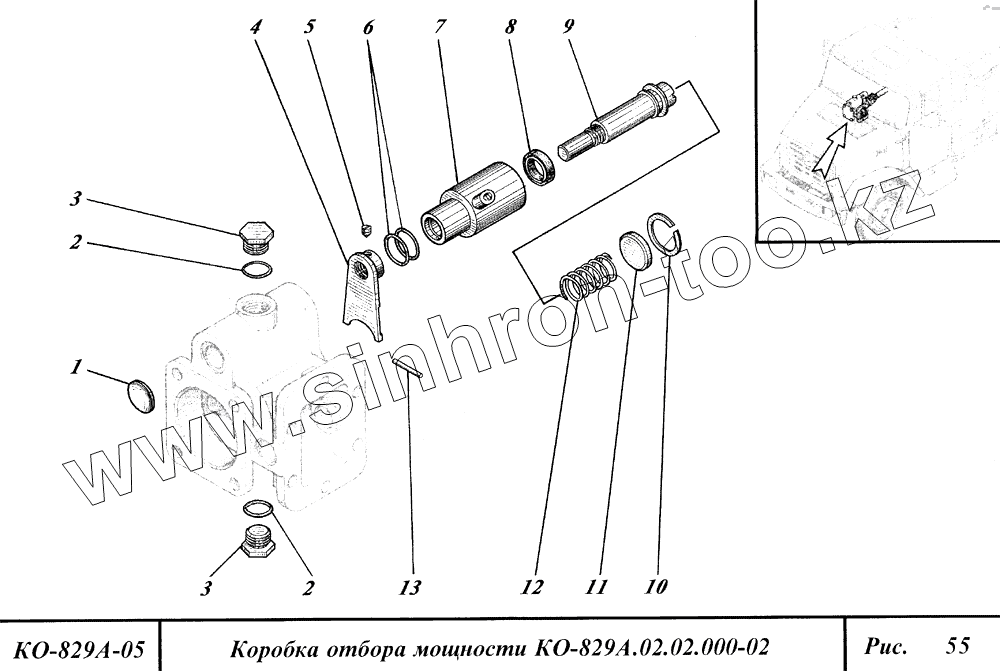 Каталог запасных частей к технике: Коммаш КО-829А. Коробка отбора мощности