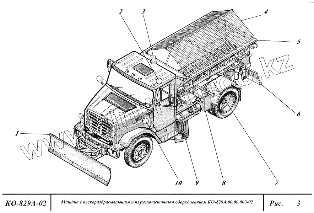 Каталог запасных частей к технике: Коммаш КО-829А. Машина с пескоразбрасывающим и плужнощеточным оборудованием