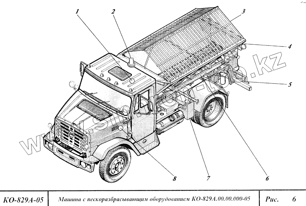 Каталог запасных частей к технике: Коммаш КО-829А. Машина с пескоразбрасывающим оборудованием