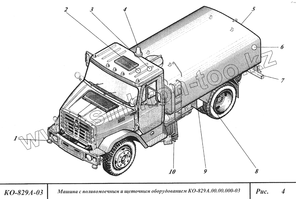 Каталог запасных частей к технике: Коммаш КО-829А. Машина с поливомоечным и щеточным оборудованием