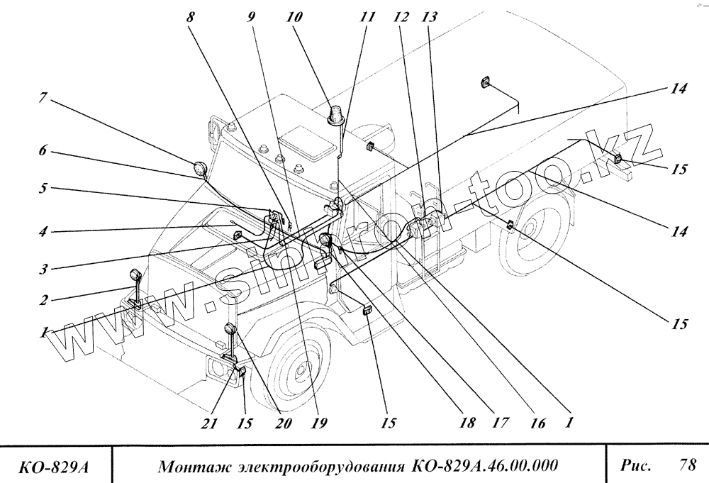 Каталог запасных частей к технике: Коммаш КО-829А. Монтаж электрооборудования