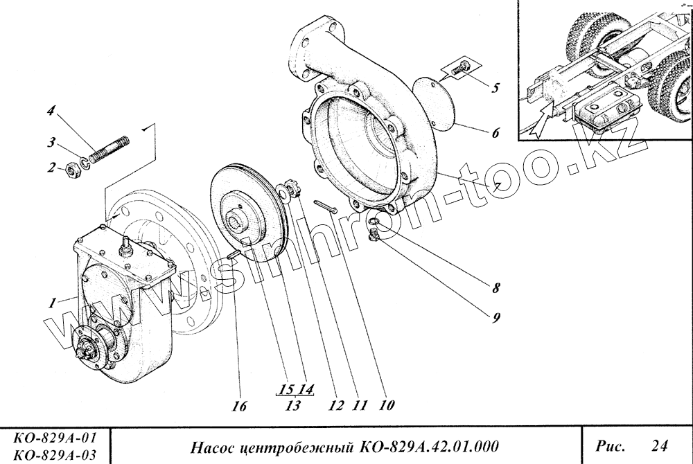 Каталог запасных частей к технике: Коммаш КО-829А. Насос центробежный