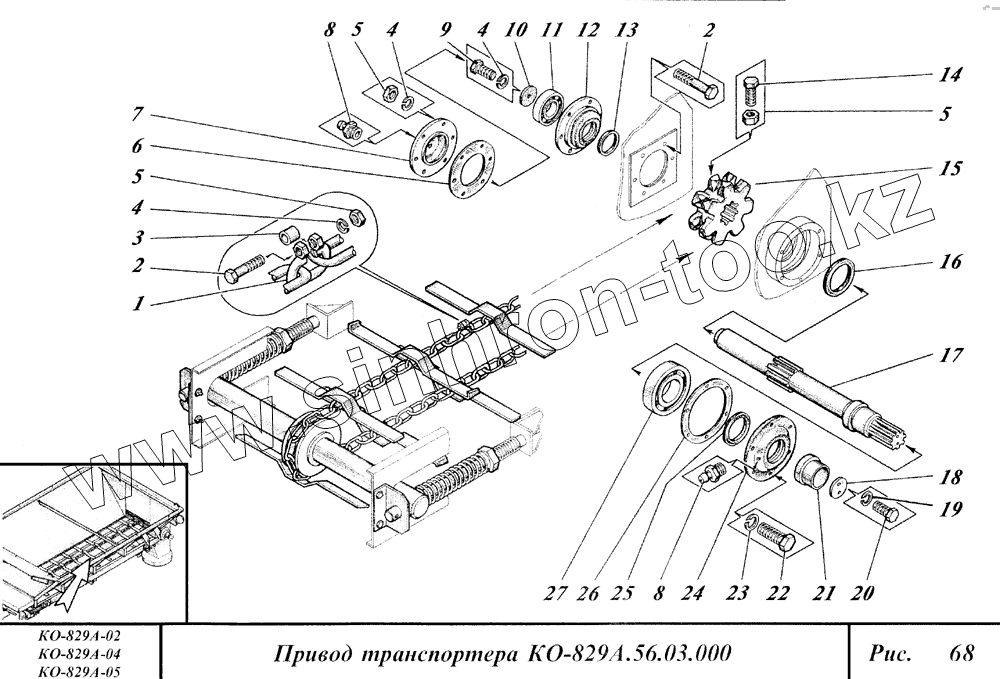 Каталог запасных частей к технике: Коммаш КО-829А. Привод транспортера