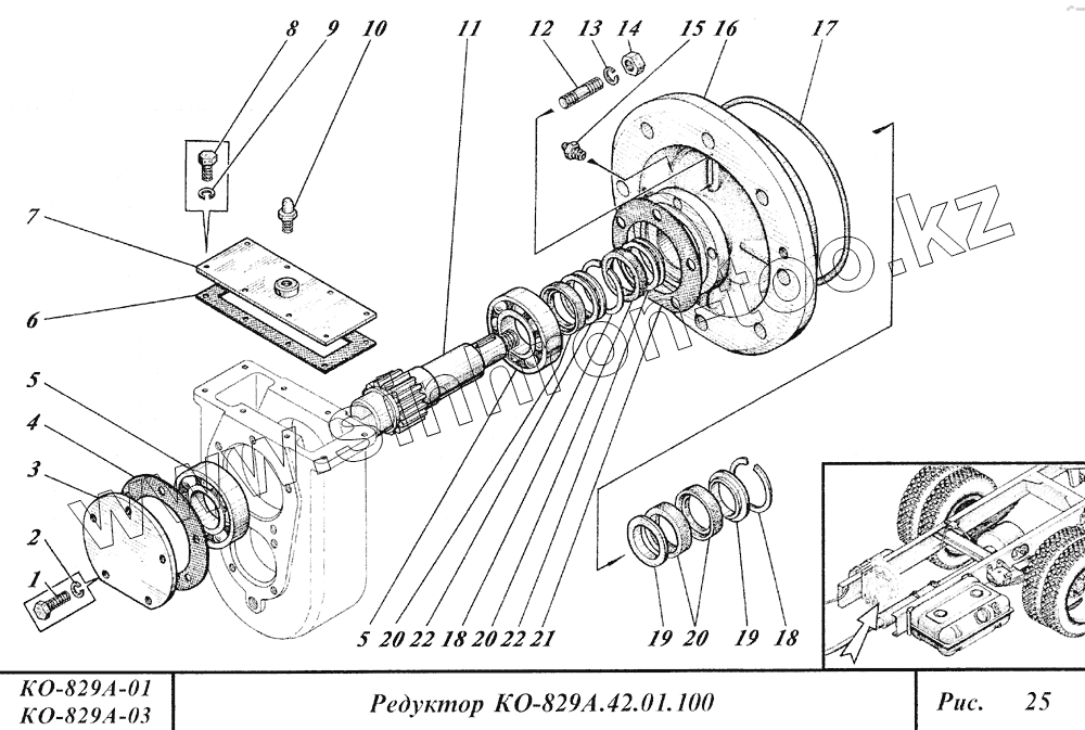 Каталог запасных частей к технике: Коммаш КО-829А. Редуктор
