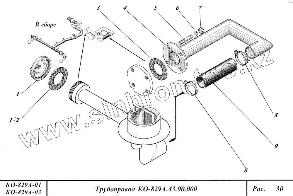Каталог запасных частей к технике: Коммаш КО-829А. Трубопровод