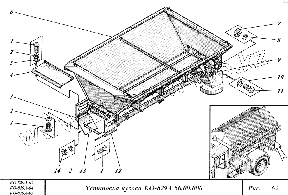 Каталог запасных частей к технике: Коммаш КО-829А. Установка кузова