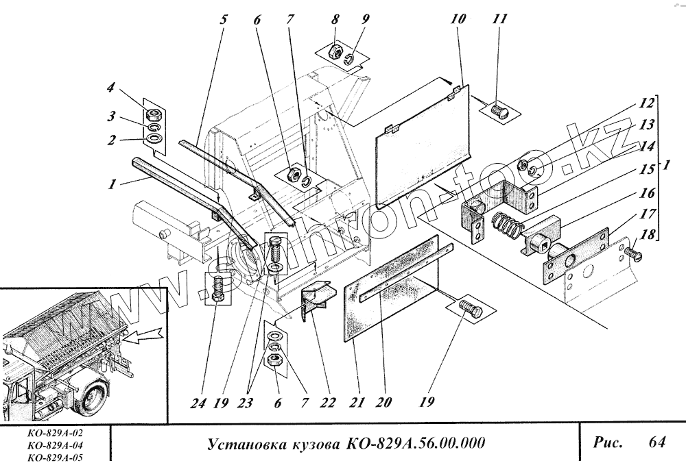Каталог запасных частей к технике: Коммаш КО-829А. Установка кузова