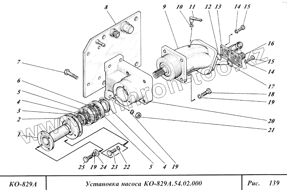 Каталог запасных частей к технике: Коммаш КО-829А. Установка насоса