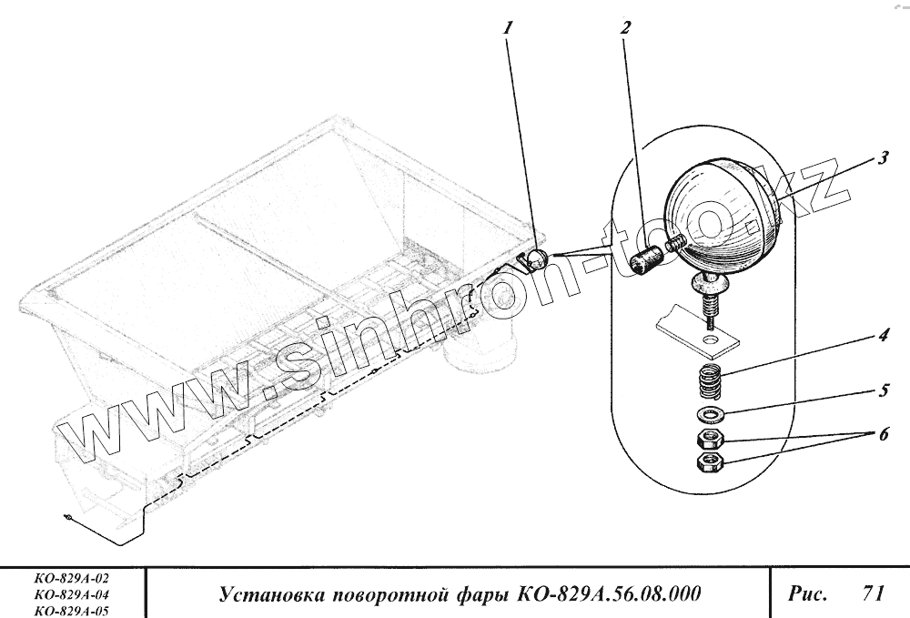 Каталог запасных частей к технике: Коммаш КО-829А. Установка поворотной фары