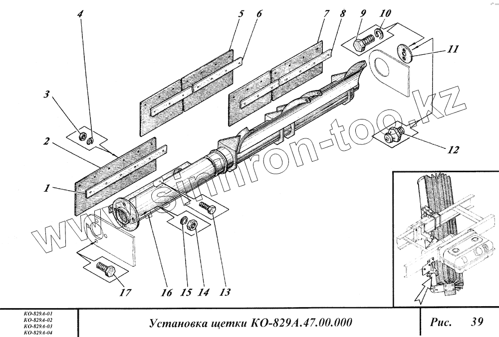 Каталог запасных частей к технике: Коммаш КО-829А. Установка щетки