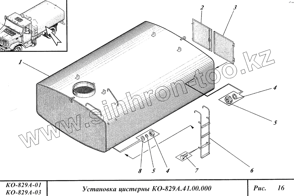 Каталог запасных частей к технике: Коммаш КО-829А. Установка цистерны
